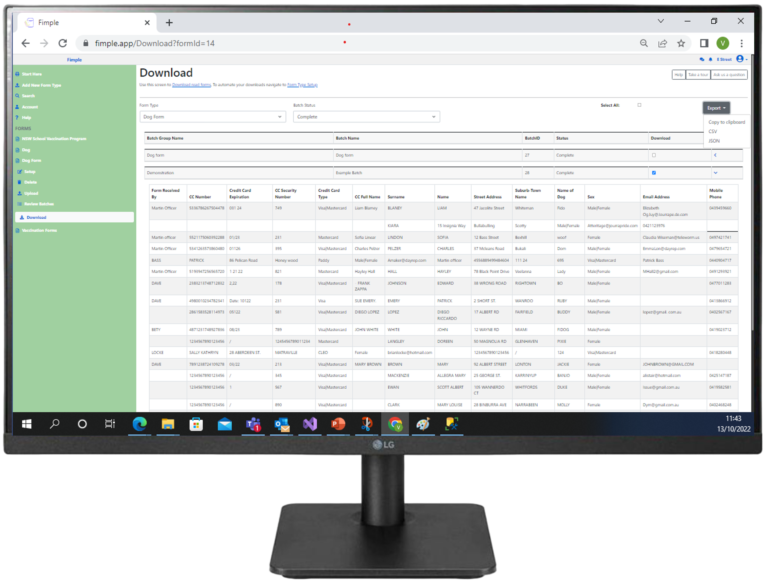 You can also download a CSV or JSON file of your data or automatically send a CSV or JSON file to a landing area for your corporate systems to pick up and load. If you choose this last option we can help with example projects that read the JSON files into various types of database.